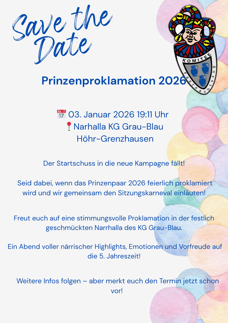Am 05.01.2024 war es soweit, der Startschuss in die Kampagne 2024 wurde mit der Proklamation der Prinzenpaare durch das Komitee Fastnachtszug Höhr-Grenzhausen e.V. eingeläutet!